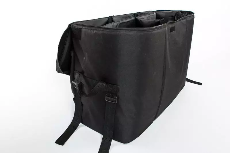 Кофр изготовлен из прочного не промокаемого материала Оксфорд 600Д, имеет полужесткое наполнение, что позволяет прекрасно держать форму,, а также изменять габариты при нестандартной загрузке. Внутренние отсеки так же трансформируются или убираются по необходимости.