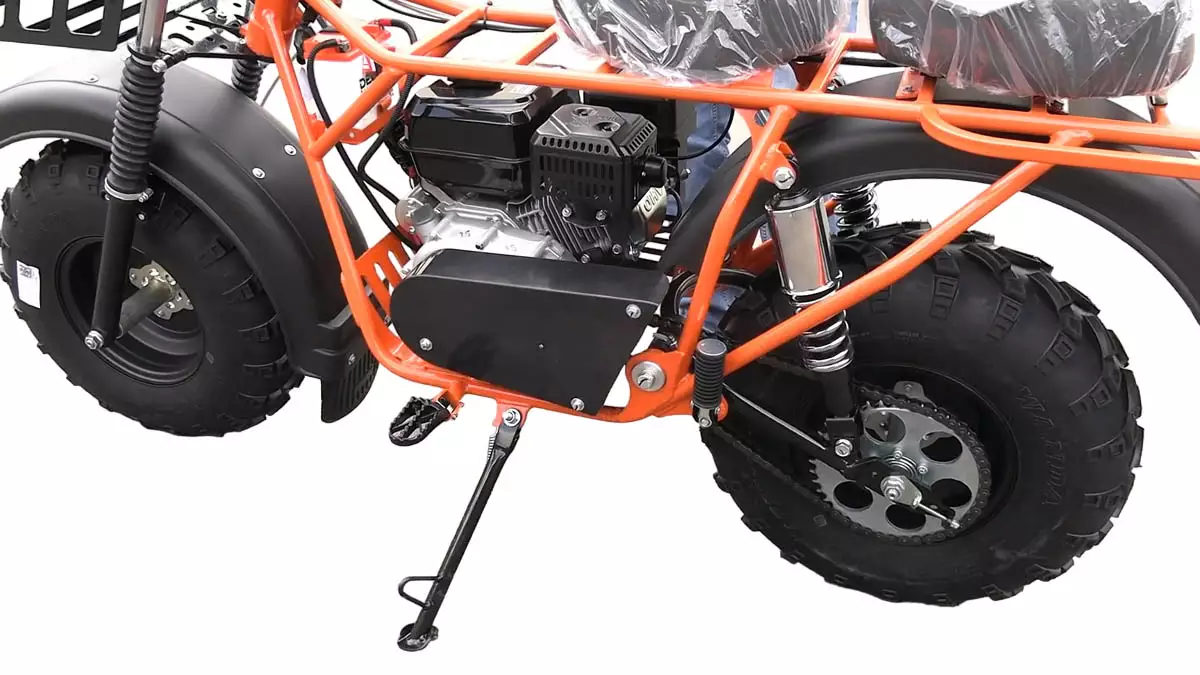 Мотоцикл СКАУТ-2F, в отличии от СКАУТ-3, обладает большим тяговым усилием идеальным для бездорожья, а если нужна скорость - то можно просто сменить ведущую звезду на бОльшее количество зубьев.