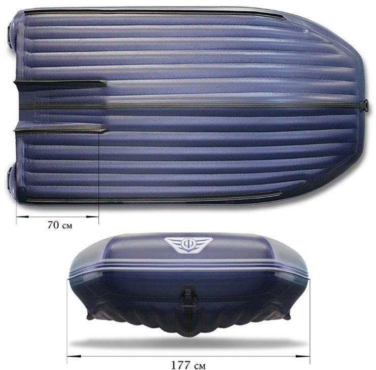 Длиной 500 см и шириной 177 см. Оборудована дном низкого давления. Допустимая мощность мотора 50 л/с. Регистрация в ГИМС не требуется при эксплуатации с мотором до 10 л/с. Лодка оборудована водометным туннелем для использования водометных движителей.