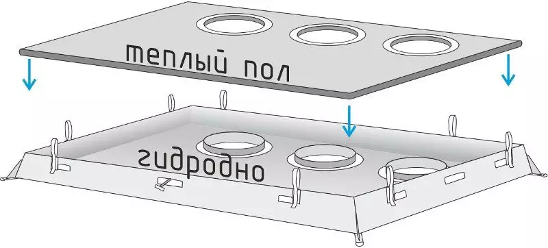 Гидро-термоизоляционное дно оснащено фланцами для отверстий под лунки с бортиками 5 см, исключающими затекание воды из лунок на поверхность пола.