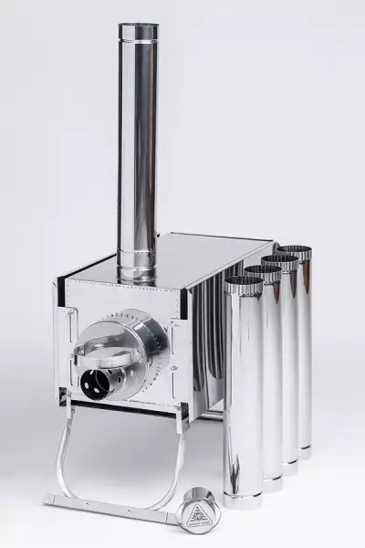 Легкая и компактная печь для обогрева палаток, нагрева походной бани и приготовление пищи. Изготовлена из нержавеющей стали Aisi 430, переносится в компактной удобной транспортировочной сумке. Оборудована ножками и регулировкой подачи воздуха.
