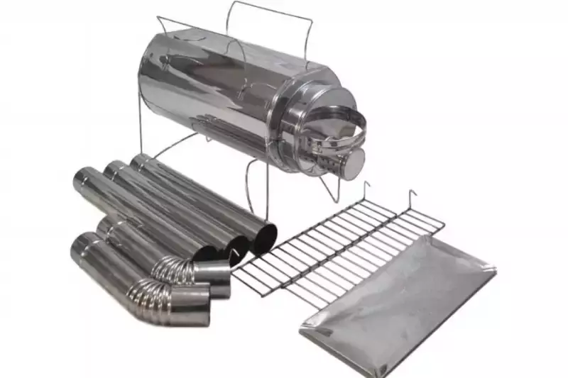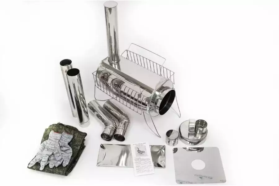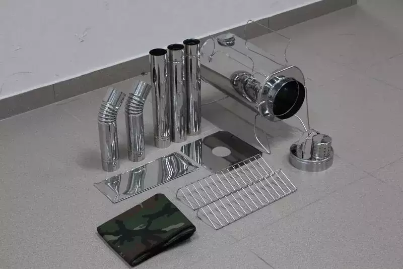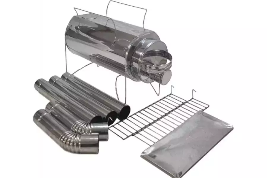 Сумка-чехол, Трубы прямые 38см х 3шт, Труба угловая 45 град х 2 шт, Решка безопасности и копчения х 2 шт, Ножки встроенные, Металлическая разделка установки трубы