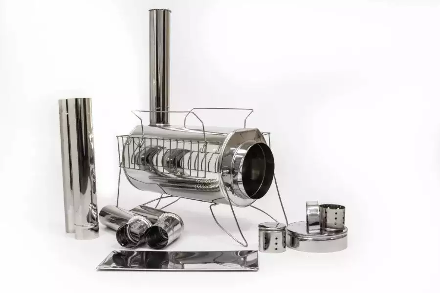 Компактные размеры и цилиндрическая форма без углов делают печку очень удобной для переноски. Место для "Кабанчика" найдется в любом рюкзаке и тем более в багажнике. -