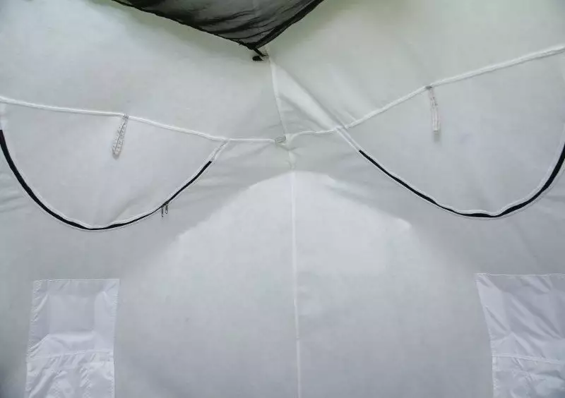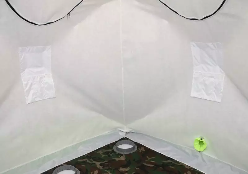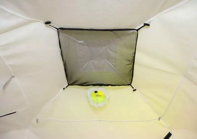 Тент изготовлен из белого материала который имеет хорошую светопропускаемость, в палатке достаточно светло в светлое время суток без дополнительных источников освещения.