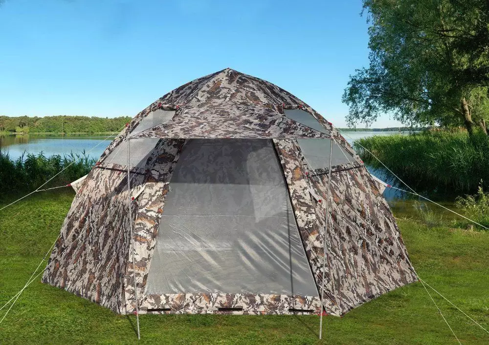 Легкая вес 9,8 кг, просторная общий объем палатки 7,5 м³, двухметровая высота , влагостойкость не менее 5 000 мм вод. столба. Новинка 2021года от компании Лотос.