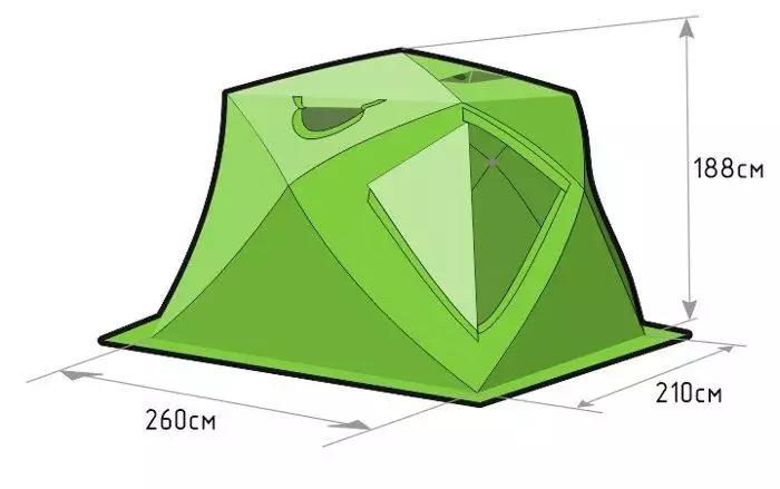 - Оптимальное соотношение пропорций конструкции! Высота палатки 188 см при ширине дна 260 х 210 см.