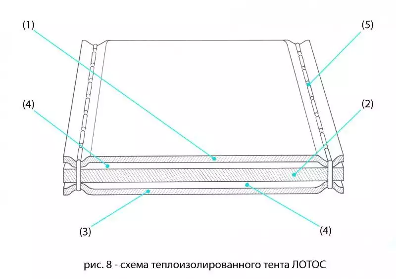 - Уникальный теплоизоляционный тент, состоящий из трех слоев, разделенных между собой сплошными воздушными прослойками, характеризуется высочайшей относительной теплоизоляцией и прочностью.