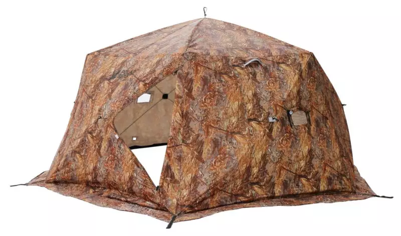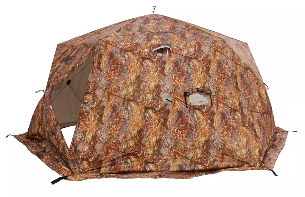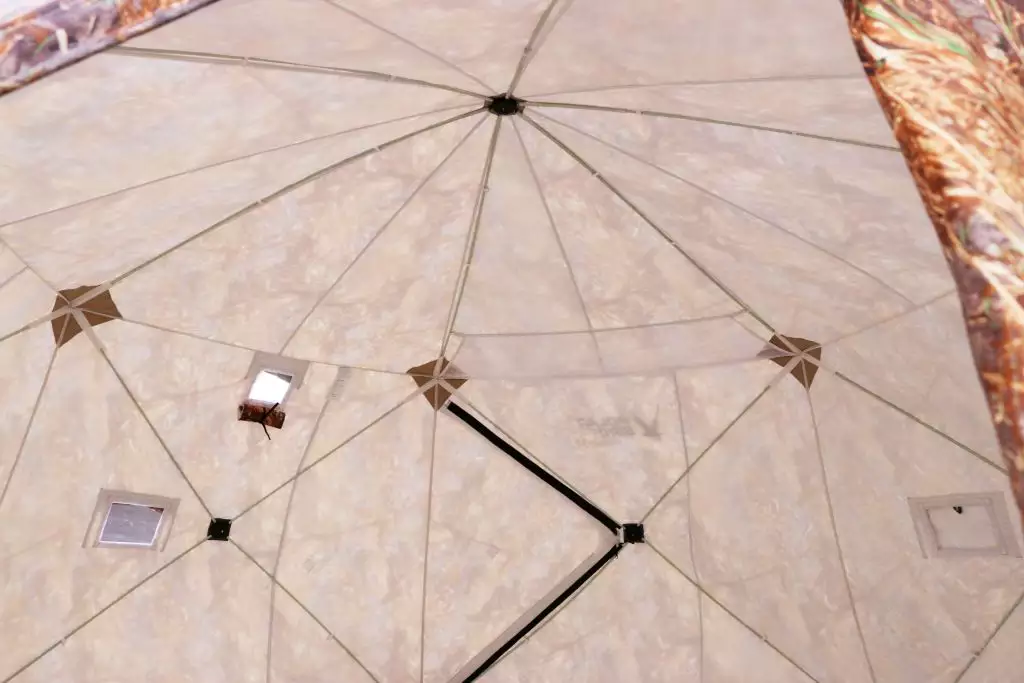 Палатка выполнена по системе куб и являются быстросборной, время сборки всего 1-2 минуты, что чрезвычайно важно при установке и снятии палатки в холодное время года. В основе каркаса прочный гладкий пруток из стеклокомпозита и композитные хабы с шарнирами, композит имеет низкую теплопроводность, в отличии металлов не имеет эффекта памяти и усталости, не обмерзает и на нем не образуется конденсат, что предотвращает заклинивание хабов и продлевает их работу.
