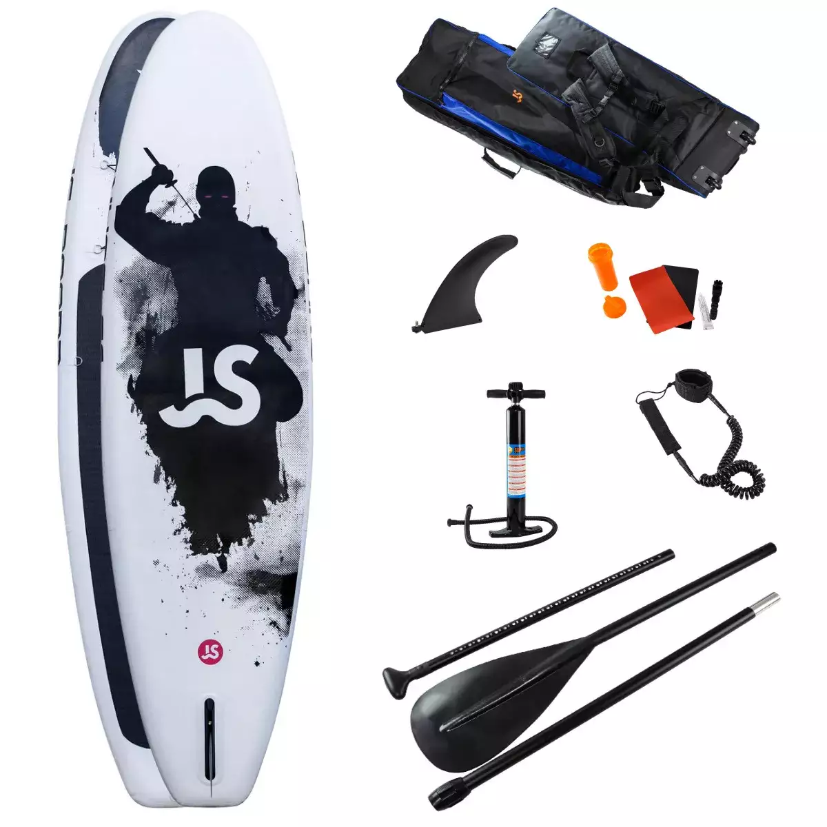 В комплекте с сап-доской поставляется алюминиевое разборное весло, у которого регулируется длина, ручной насос, страховочный лиш, плавник, ремкомплект и рюкзак для транспортировки.